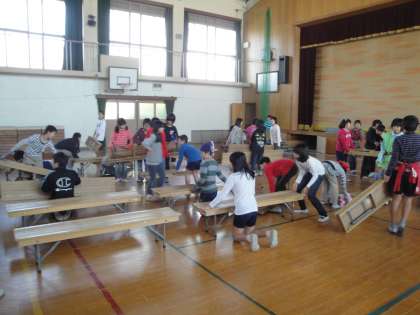 給食前の時間を使い,就学時健康診断の事前準備を5年生が行いました。担当の先生と協力して,あっという間に準備を終えました。さすが5年生です。