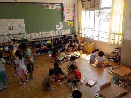 「よーし,これを並べて・・・どうしよっかなぁ・・。」など楽しく取り組む声があちこちから聞こえてきました。
