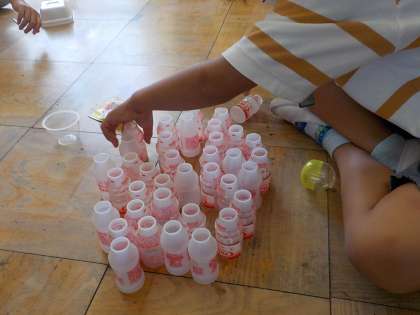 今日は集めた材料ごとに遊び,どんなことができるかを試してみました。