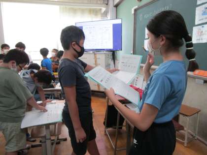 外国語の時間に、休日の過ごし方についてたずねあいました。どのくらいお手伝いをしているかや何時に起きたり寝たりするのかを伝え合うことができました。
