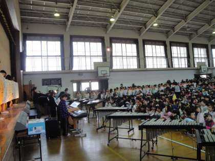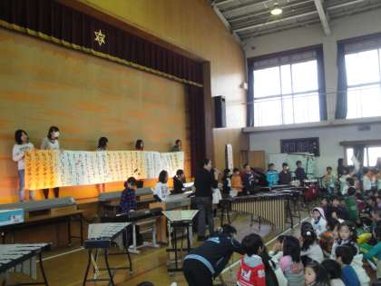 全音楽委員会の演奏で,「レッツ・シング・ア・ソング」を全校合唱しました。