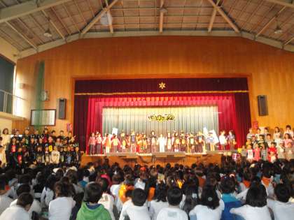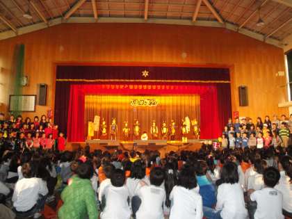 4年生の劇「子どもの祭り」です。劇だけでなく,歌もありました。最後のメッセージは,子どもたちの心に十分届いたようでした。