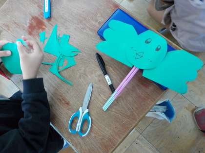 太さの異なる2本のストローを使うと・・・ちょっとした仕組みが生まれます。その仕組みを活用して,作品制作に取り組みました。