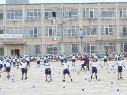 令和4年度 柿の実運動会プログラム9【1年おどるポンポコ玉入れ】