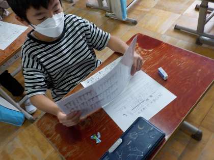 書いている時,ふと見てみると国語科教科書の巻末にある「ことばのたからばこ」を参考にしながら,文章を書いている人もいました。理由を聞いてみると,「上手な文章を書けるようになりたいから!!」とのことでした。