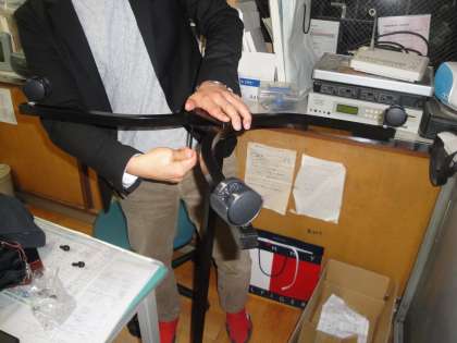 屋内・屋外用ハンディタイマーに取りつけるスタンドを購入しました。子どもの目線で走りながら見ることができるため,自分のペースを考えて走ることができます。