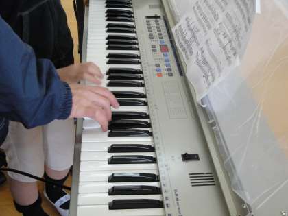 昼休みに音楽室で,音楽委員会の子どもたちが「すてきなともだち」の合奏練習をしていました。担当の先生にアドバイスをもらいながら,一生懸命に練習できていました。
