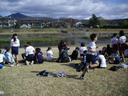4日の日曜日,鴨川・出雲路橋・葵橋周回コースにて,京都市小学生駅伝競走記録会が行われ,伏見板橋の6年生もチームを組んで参加しました。寒風が吹きすさぶ中,力一杯走る姿や一生懸命仲間を応援する姿が見られました。