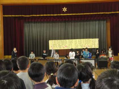 その次に,音楽委員会の合奏で「すてきな友だち」を全校合唱しました。