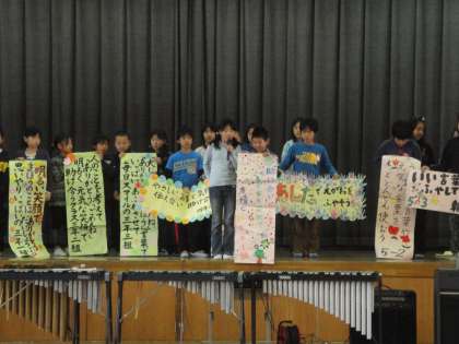 各学級の代表の児童から,人権目標のふり返りやこれから頑張りたいことなどの発表がありました。