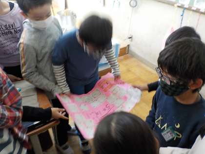 そんな気持ちがいっぱいの2年生たちは,感謝のメッセージを書くことにしました。そして,プレゼントに向かった2年生たち。