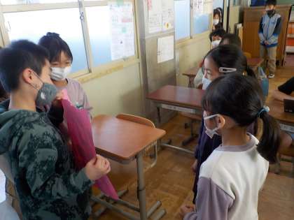 もらった上級生も2年生も笑顔いっぱいでした!!