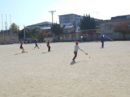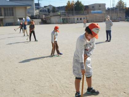 初めは打ち方が強すぎて、遠くまでボールが転がっていったり、違う方向へ転がっていったりしていましたが、少しずつ慣れていくことで、うまくボールをコントロールできるようになっていきました。