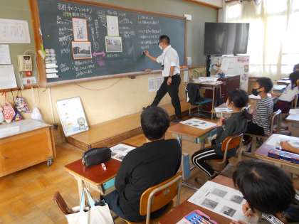 3年生の教室では、京都市の移りかわりを写真を見ながら気づいたことを話し合っていました。