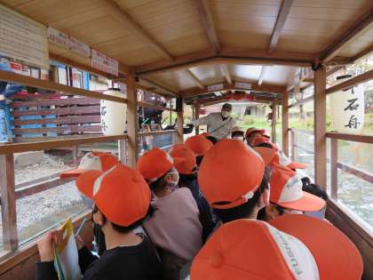 十石舟に乗ることが楽しみで,しっかりと話をきいて,楽しく舟にのっていました。
