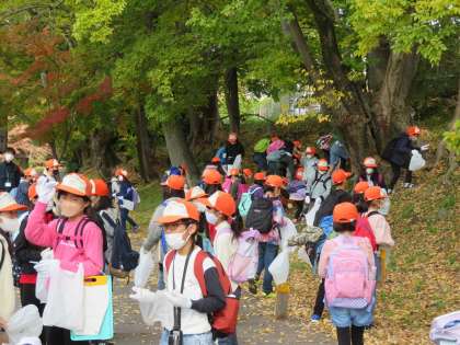資料館での学習がおわったら,舟つき場までごみを拾いながらもどりました。