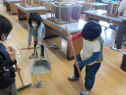 2年生は,4・5年生たちと一緒に教室や廊下,特別教室などをじっくり時間をかけて掃除しました。