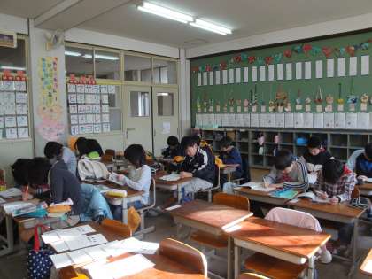 5・6年生の学習の様子です。前半に自学自習に取り組みました。