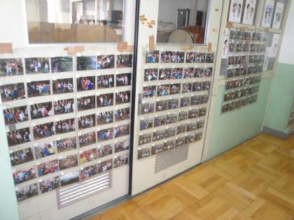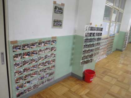 5年生廊下に花背山の家の写真を掲示してあります。販売用の封筒は,子どもたちが持っています。