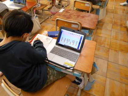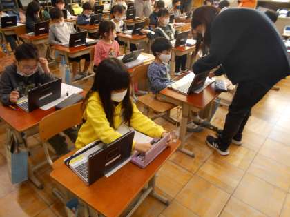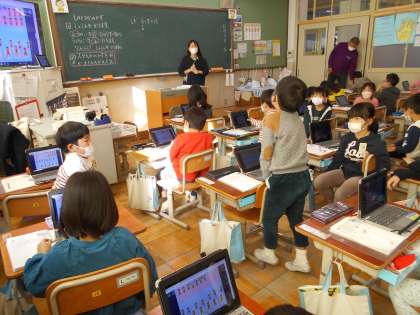 GIGA端末を使いながら自分で考え、考えたことをしっかり発表しています。