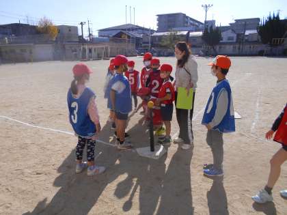 打つ、 捕る、 投げるなどの動きを得意とする子もいれば苦手な子もいます。けれど互いに声をかけ合い、協力しながら楽しんでいる姿が微笑ましかったです。
