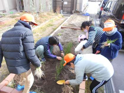 2時間目はネギの収穫です。ネギを使った料理をするのかな。