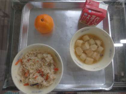 今日の給食は「ツナごぼうごはん」と「みそしる」でした。