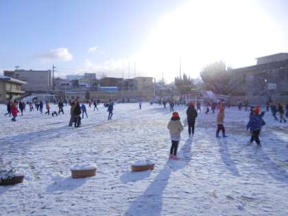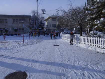 朝から子どもたちは楽しそうに雪遊びをしていました。