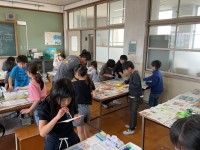 教室の後ろに掲示する四季を感じる絵を描いていました。