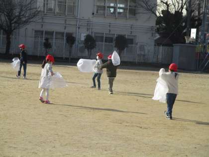 ビニール袋で風を捕まえたり,風車を