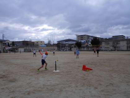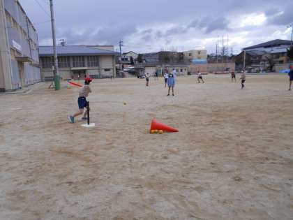 今朝は少し寒いですが、運動場では元気にベースボールをしています。