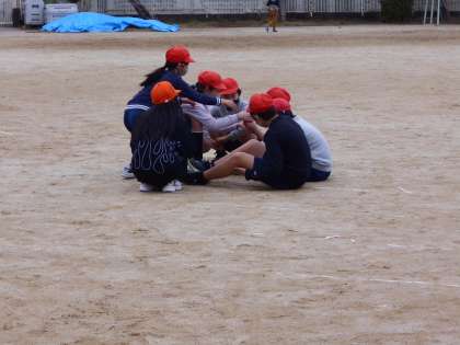 ゲームの途中に作戦タイムがあるようで、輪になって話し合いをしています。とってもいい雰囲気です。