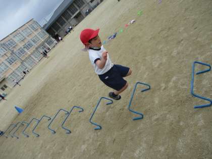 ミニハードルを跳んだり,