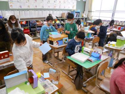 「ミッキーマウスの家にした」「屋上にプールをつくった」など楽しみながら学習をすすめています。