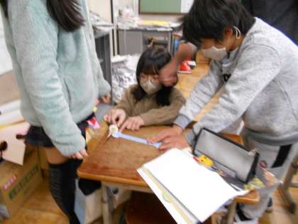 直径の違う輪を一回転させて進む距離を比べる活動を通して、円周率について学んでいきます。