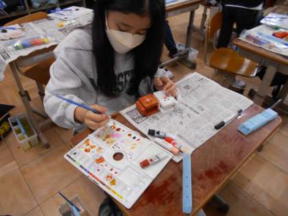 自分のイメージを大切にしながら工作に取り組んでいます。