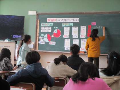 食糧自給率と私たちの生活について考えました。日本の食糧自給率の問題点をあげたあと、