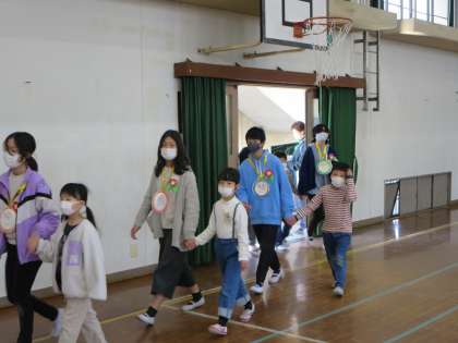各学年からの出し物やビデオメッセージ、そして、たてわりグループからのメッセージ、1年生からのお花のプレゼント…など様々な形で6年生に思いを伝えてくれました。