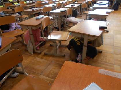 今日はシェイクアウト訓練を実施しました。