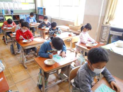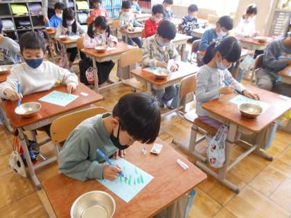 子どもたちは楽しそうに何度も何度も「はらい」の練習をしていました。