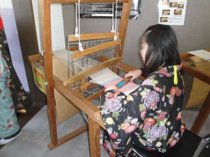 お客様に対して西陣織の紹介や小物の販売などをしました。