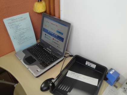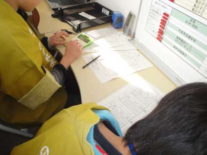 ブースの裏では,会計担当や情報処理担当が,書類を作成したり,コンピューター入力したりしていました。