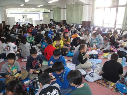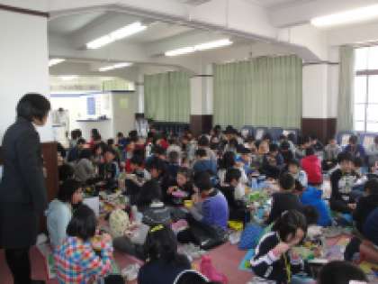他校の友だちと食べるお弁当は,とても美味しかったようです。