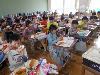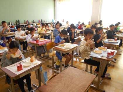 どの学年・学級も久しぶりの給食をおいしくいただいていました。