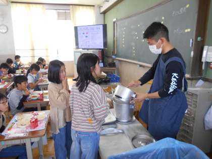 給食時間には昨年同様、川田先生の読み聞かせを行います。