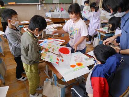 色鮮やかに塗った自分の作品を自慢気に見せてくれました。