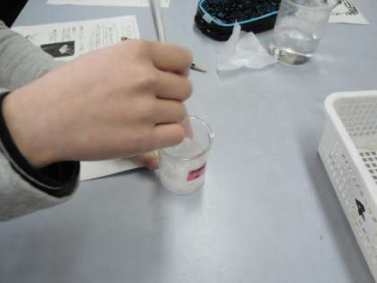 ホウ酸を使って,一定量の水に溶ける量に限度があるかどうか調べました。また,溶け残った食塩やホウ酸をすべて溶かす方法を考える。