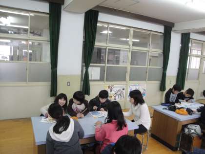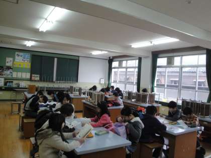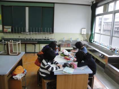 4・5・6年生の学習の様子です。理科室に集まり,自学自習に励みました。
