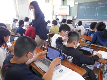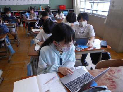 そもそも内閣って何??ということから、内閣のはたらきについてGIGA端末や資料集を使って調べています。