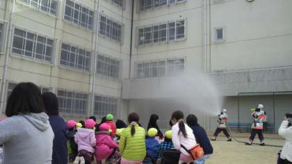 火事が起こったという想定でした。放水する様子を間近で見ることができました。